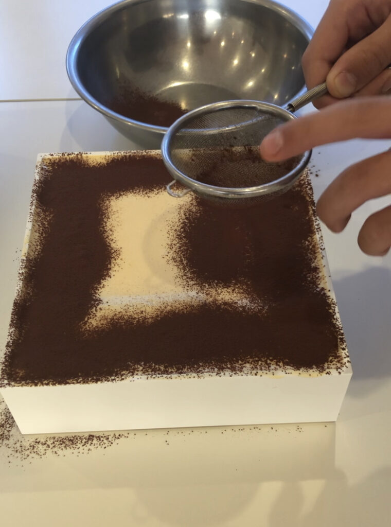 全体にココアパウダーがかかるように丁寧に振りかけました。