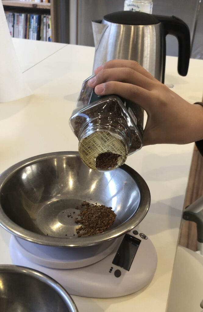 まずインスタントコーヒー10gに100mlのお湯を注いでいきます。