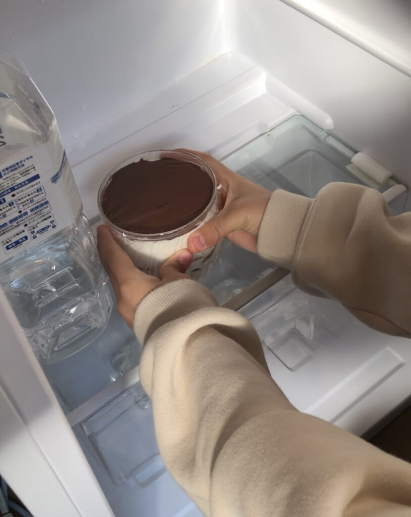 ココアパウダーを振ったらラップをして冷蔵庫でしばらく保管。
