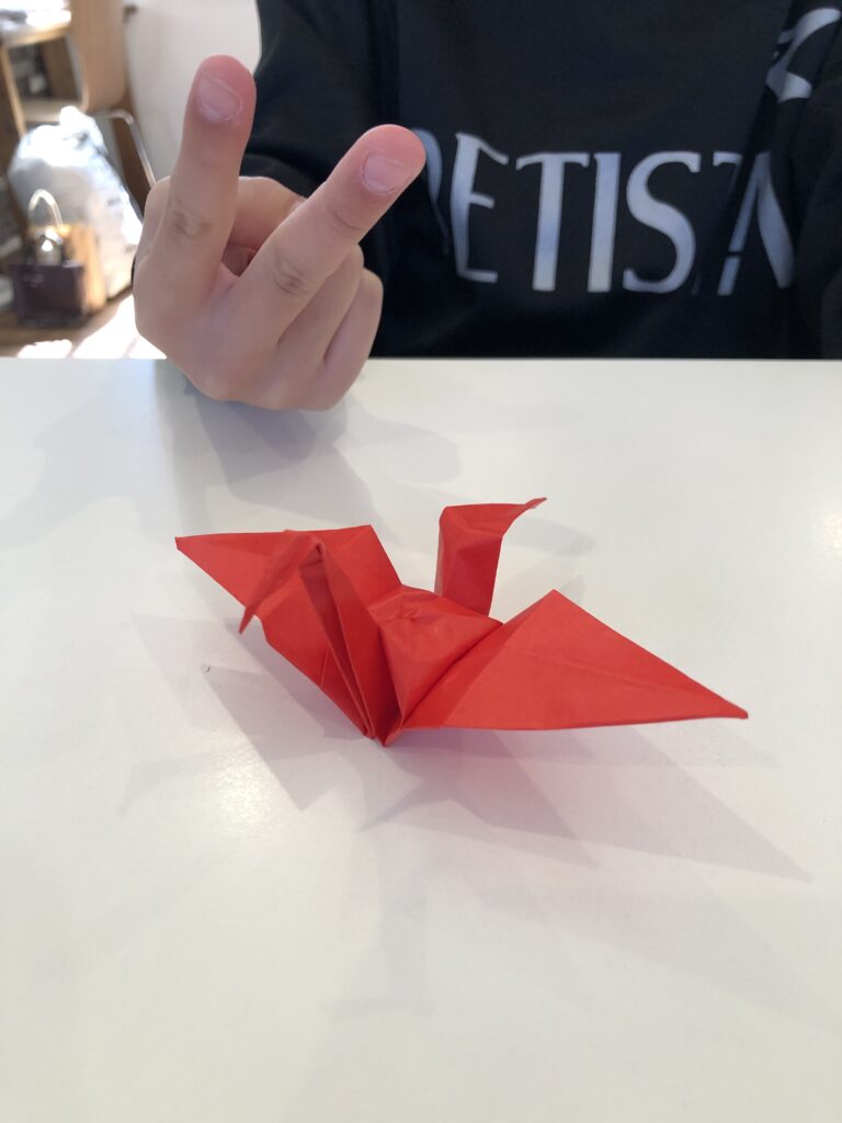 生徒:「折り鶴作ったことあるけど完成したことない」