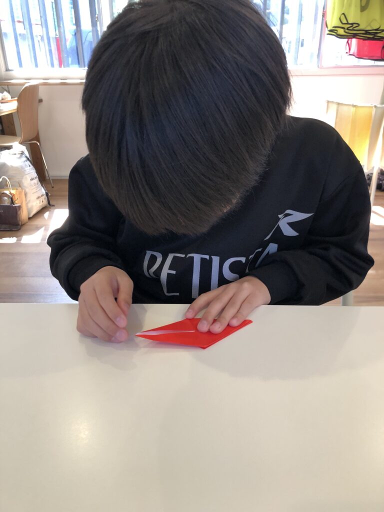 ファインディースクールでは先日の活動中に折り鶴を作りました。