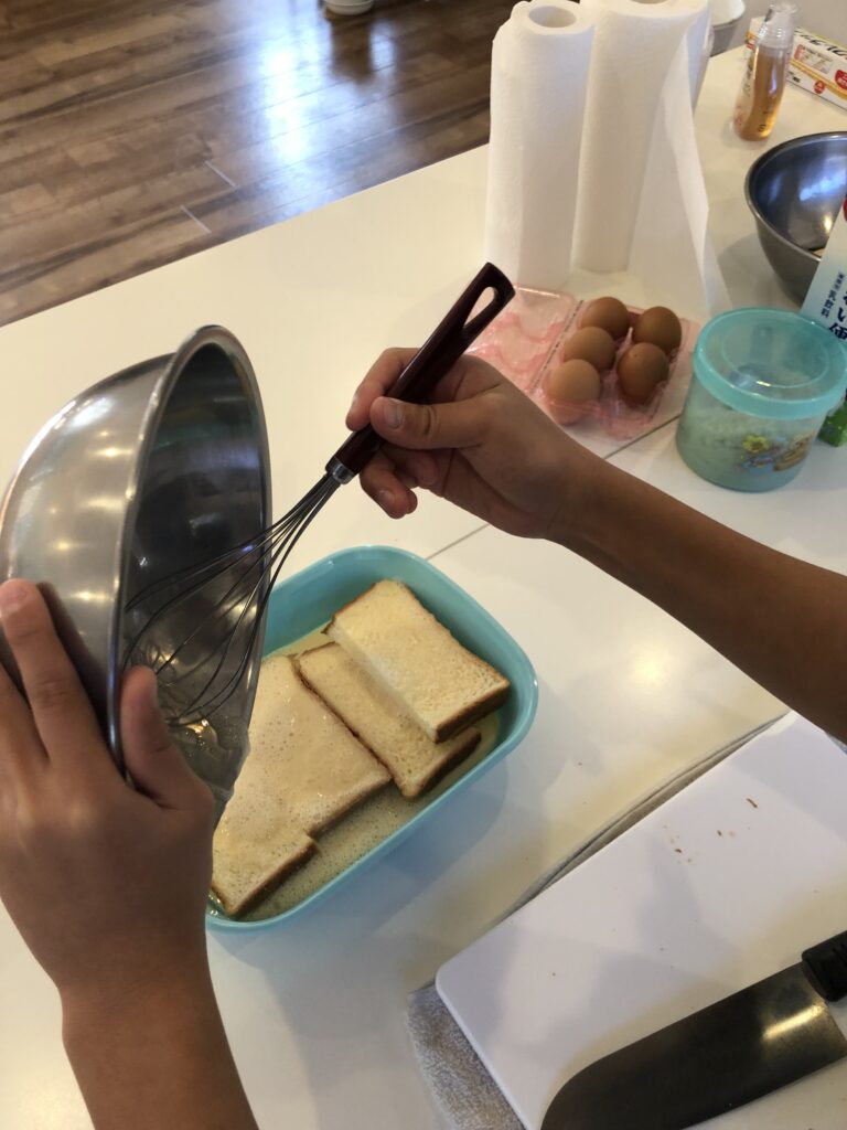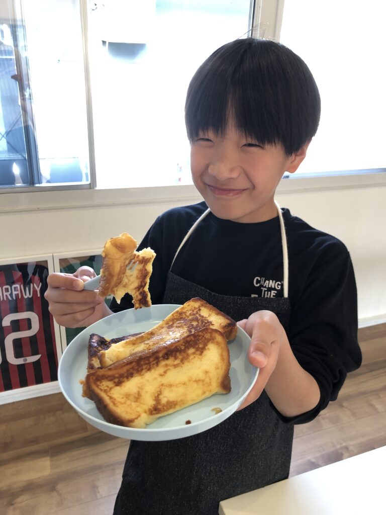 ファインディースクールでは先週3月14日(木)の午後に調理実習でフレンチトーストを作りました。