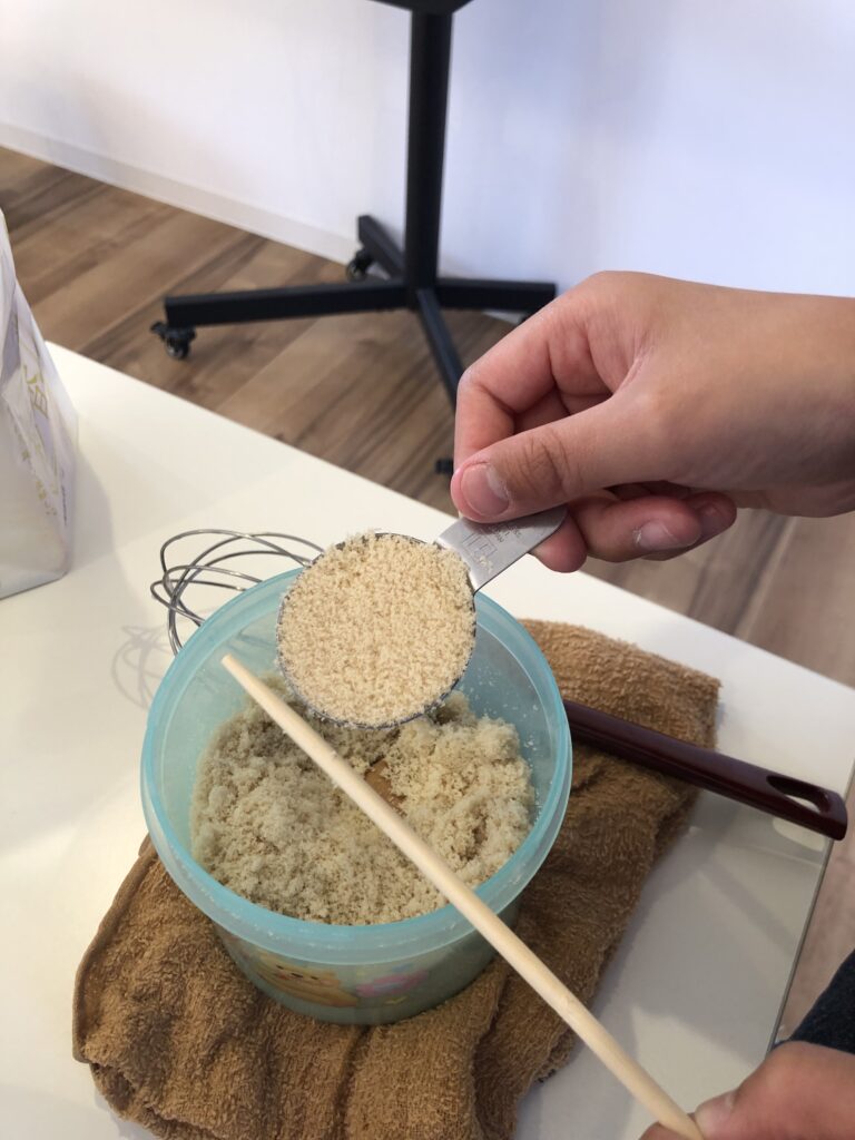 調味料を測って混ぜていく作業にも慣れ、一人でテキパキとできるようになってきました。