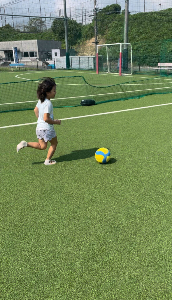 普段はあまりスポーツはしないみたいですが、一生懸命走り、シュートを決めていい笑顔を浮かべていました。