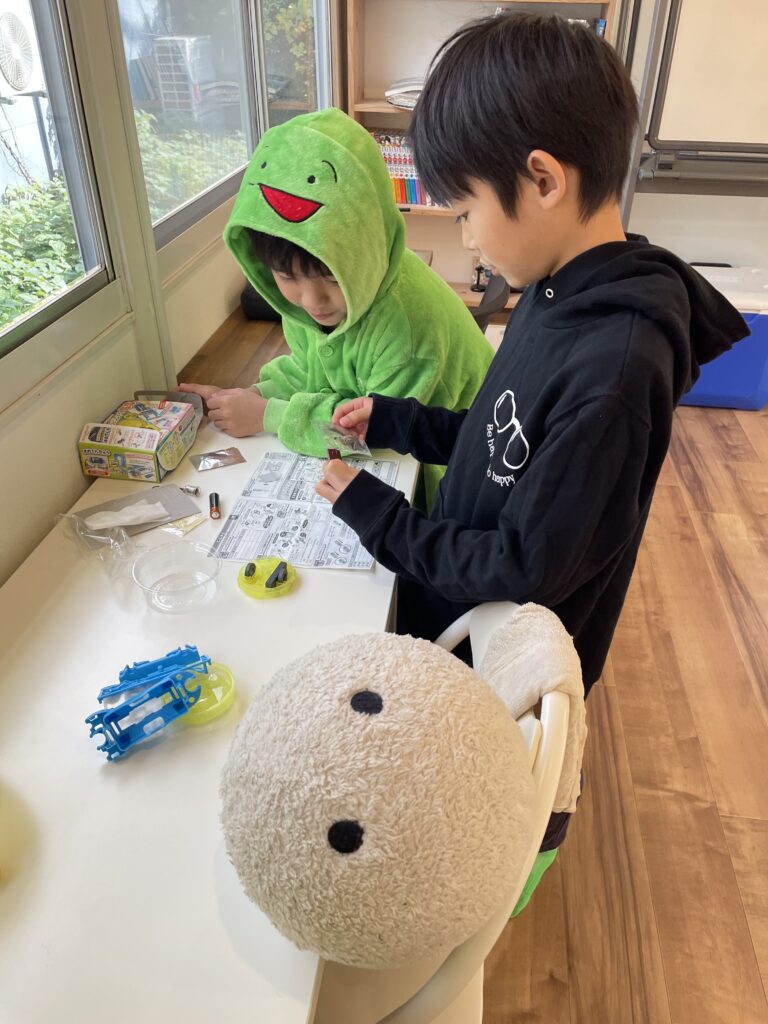 説明書をよく見て、たまに「ここどうやるん?」と訊きながら頑張って取り組んでいました。