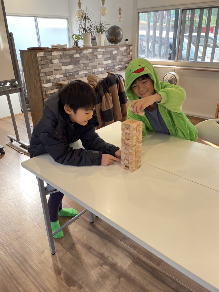 まずジェンガをしましたが私も含めた3人でハラハラドキドキ、楽しみながら遊びました。
