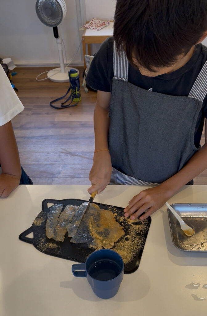 夏休み初日の今日はみんなでわらび餅を作りました。