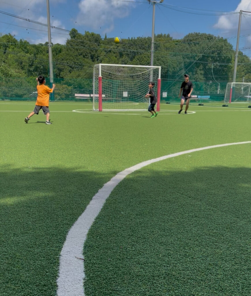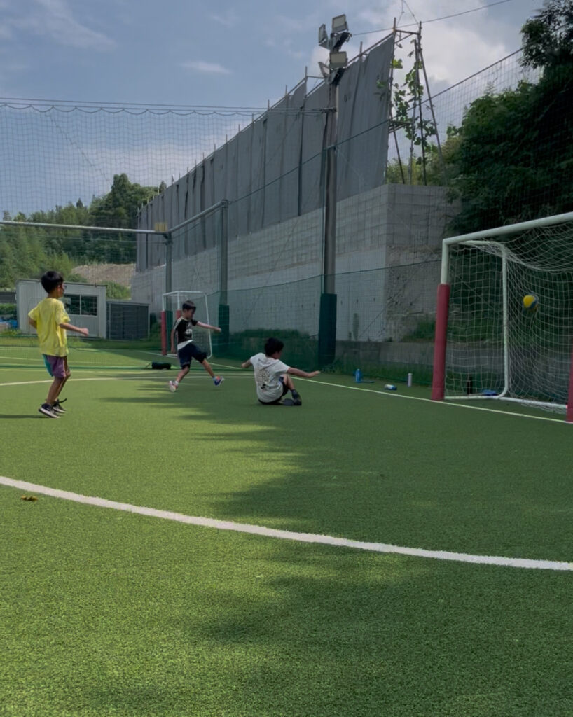 ファインディスクールでは連日の猛暑に負けず子どもたちはグランドに出てサッカーをして遊んでいます。