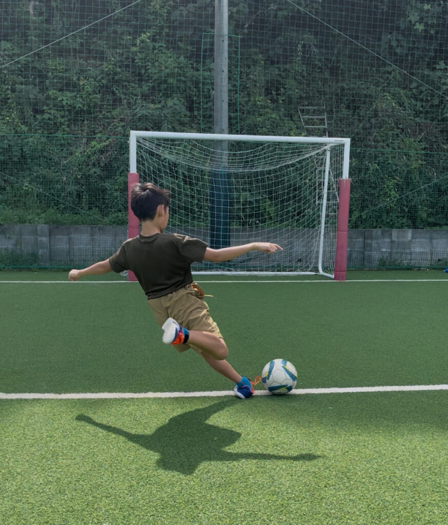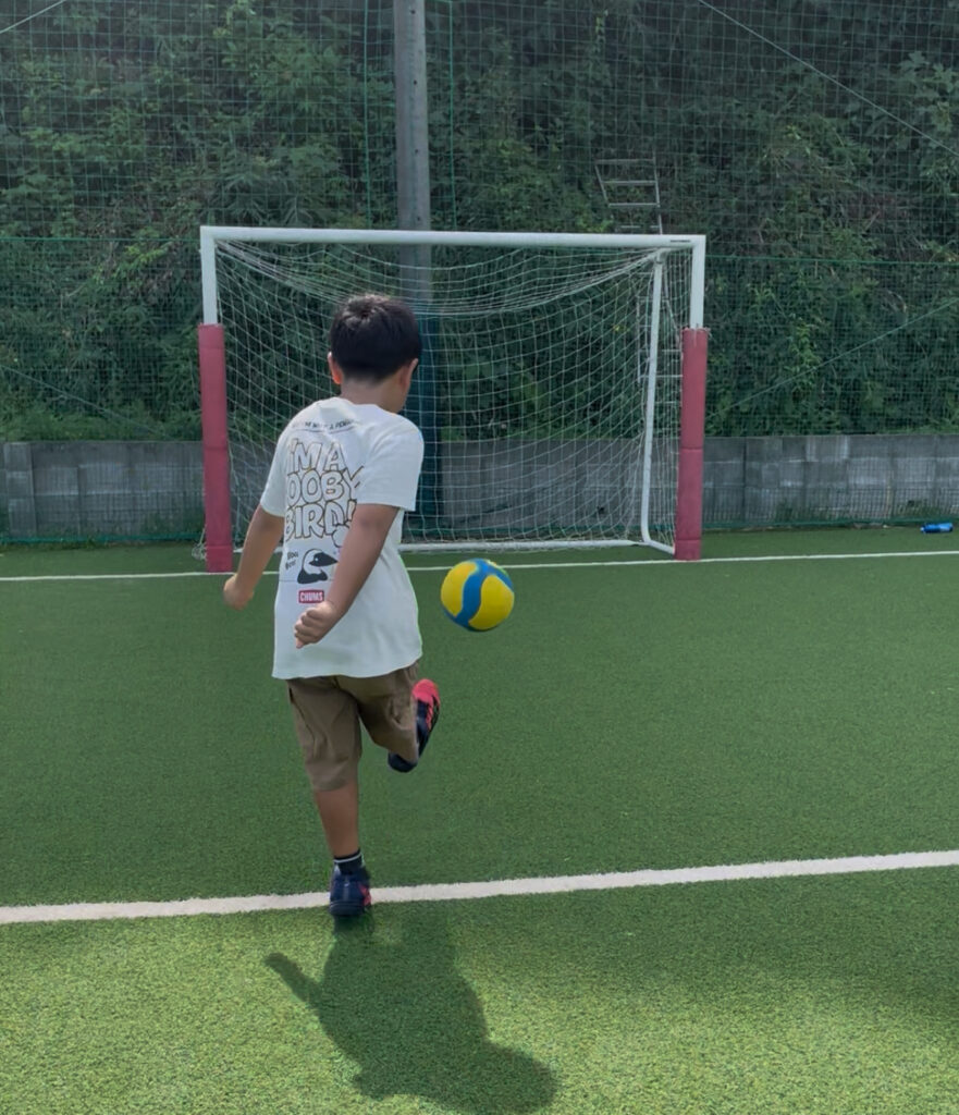 ファインディスクールでは子どもたちは毎回元気よく外でサッカーをしています。