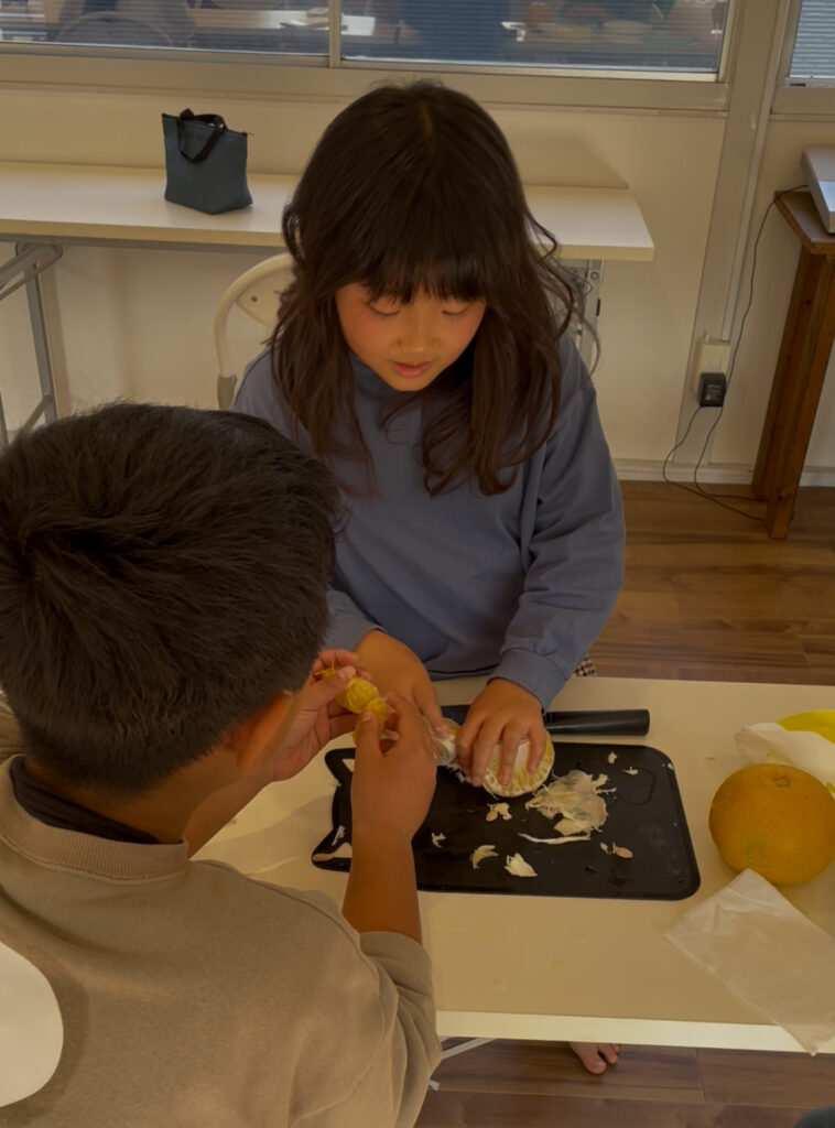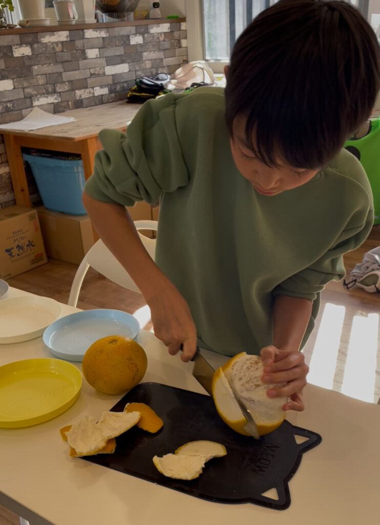 包丁で切るのが難しかったですが、1つ1つ丁寧にみんなのために切り分けてくれました。