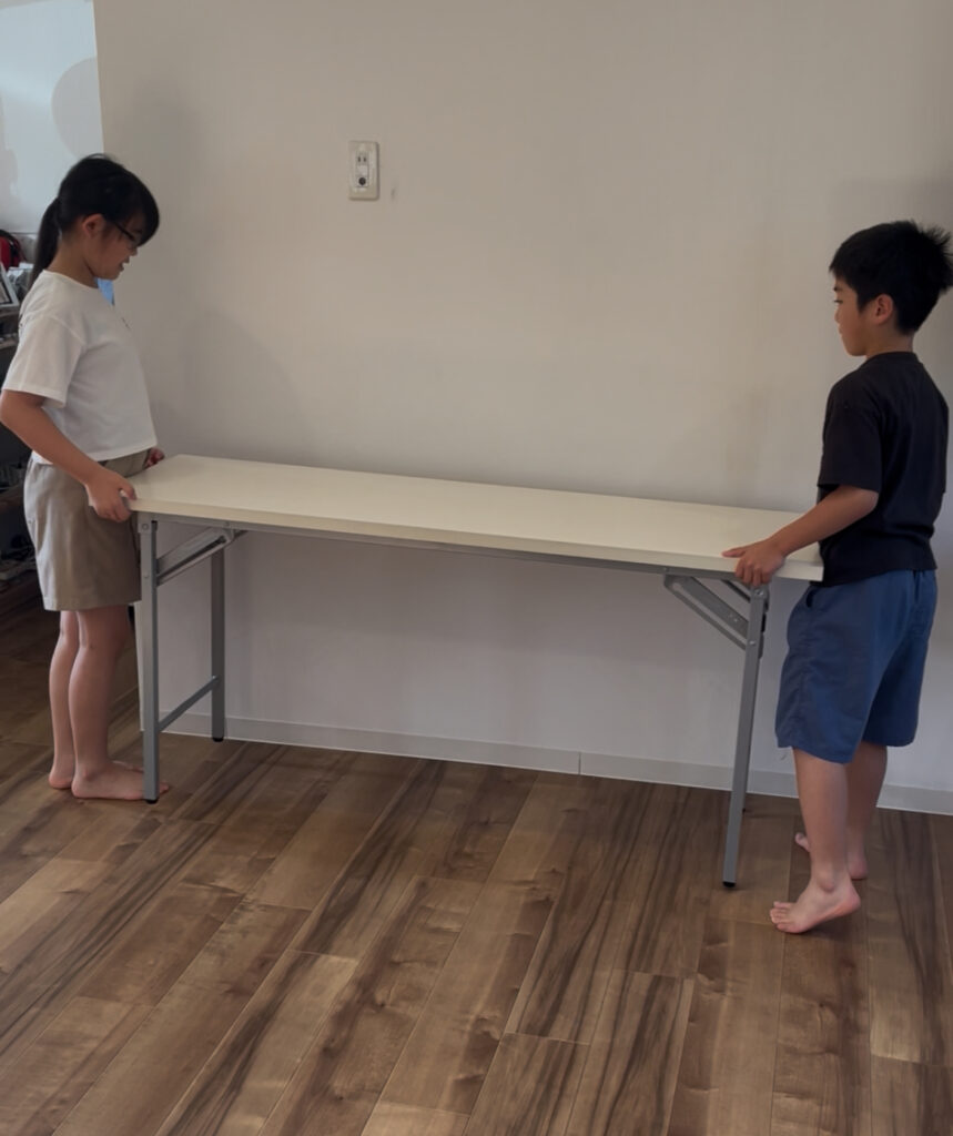 毎回昼休憩の後、机といすを片付けて、床をぞうきんで拭いてもらいました。