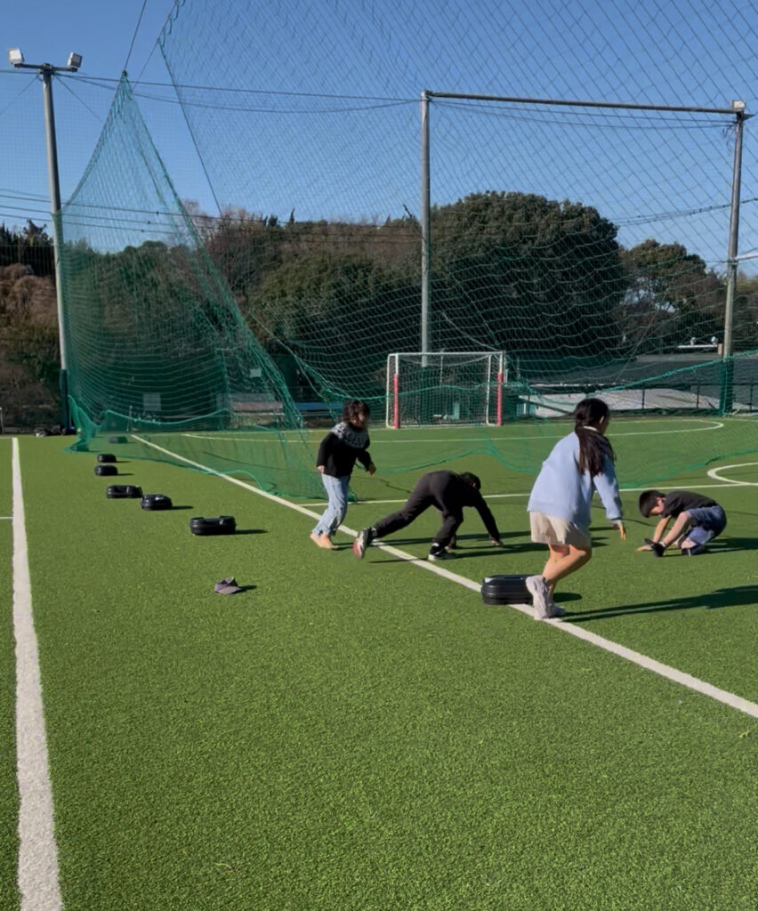ファインディスクールの子どもたちも強風の中サッカーをしていましたが…